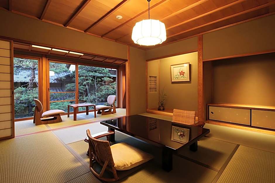The double room includes a private bathroom, well-fitted with a bath, a shower, a bidet, a hairdryer and slippers. The spacious air-conditioned double room provides a flat-screen TV with satellite channels, tatami, a mini-bar, a tea and coffee maker as well as garden views. The unit offers 2 beds.